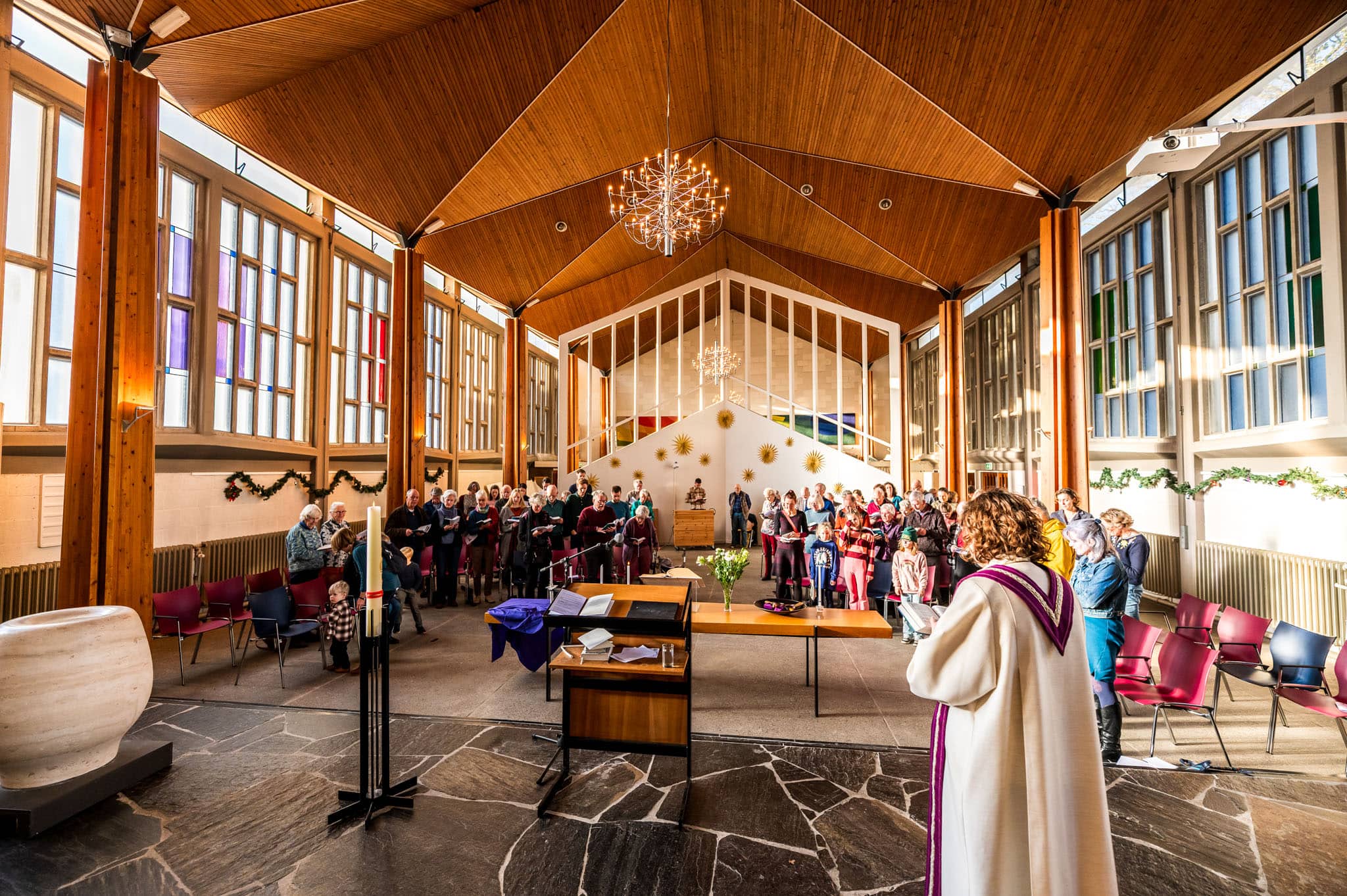 De dienst begint in principe om 10.00 uur. Op de derde zondag van de maand is er een Ruimteviering. Die begint om 10.30 uur.